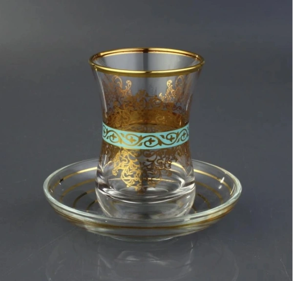 561-201 ÇAY TAKIMI ORGANİK BOYA EBY ALMAS ALTIN DEKOR 6 KİŞİLİK 12 PARÇA