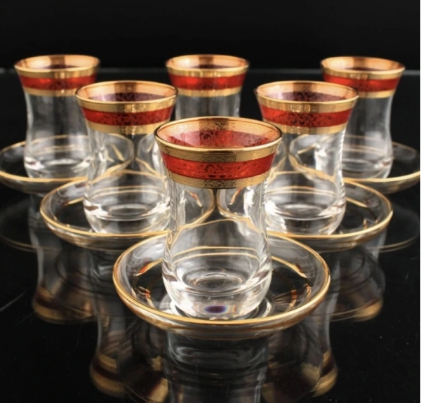 451-661 ÇAY TAKIMI AĞIZ CİDAR ALTIN DEKOR 6 KİŞİLİK 12 PARÇA