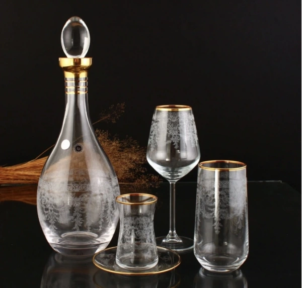 Paşabahçe Deste Gül Altın Dekor 49 Parça 12 Kişilik Bardak Seti